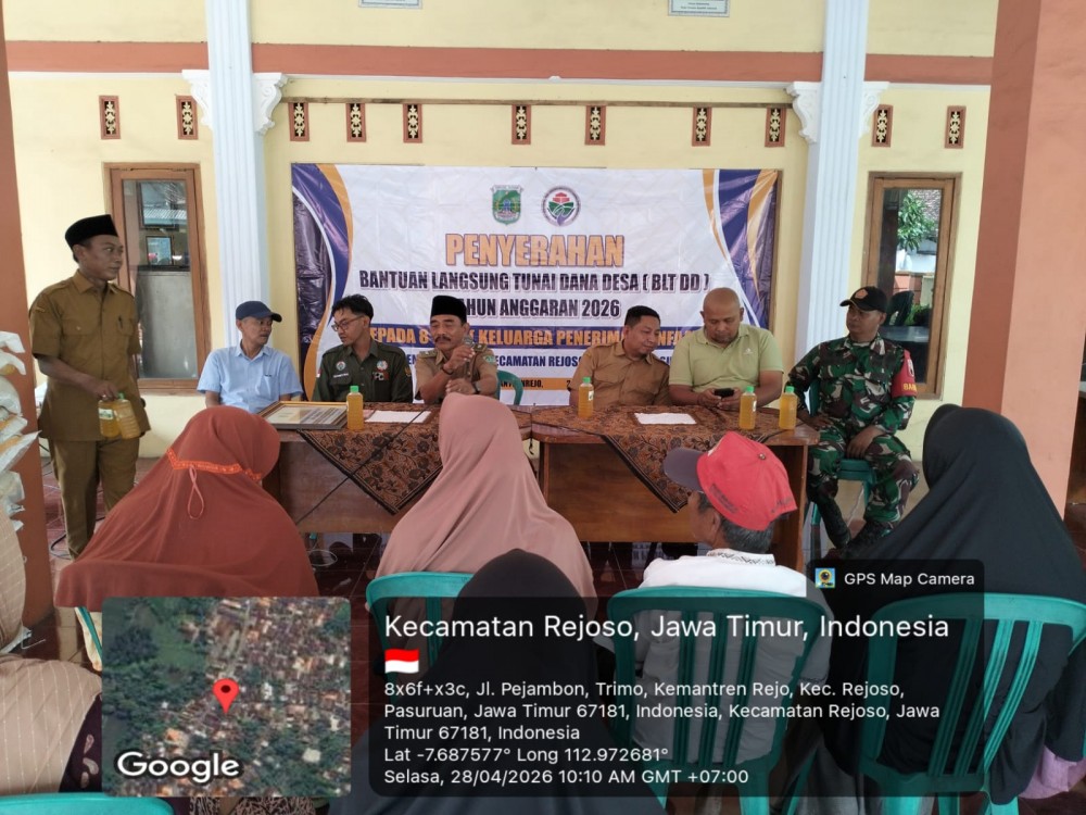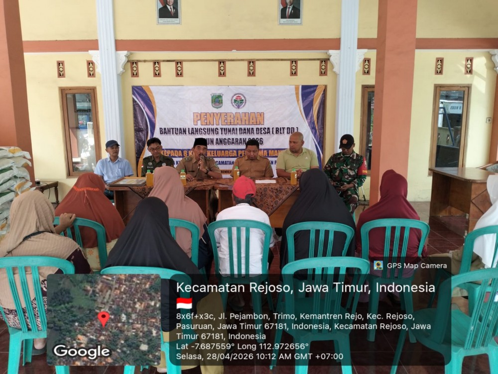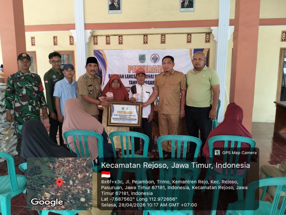 Kemantrenrejo, Rejoso, Pasuruan – Pemerintah Desa Kemantrenrejo menyalurkan Bantuan Langsung Tunai Dana Desa (BLT-DD) Tahun 2026 untuk periode bulan Januari s/d April 2026. Penyaluran untuk 8 Keluarga Penerima Manfaat (KPM) tersebut dilaksanakan di Balai Desa Kemantrenrejo, Selasa 28 April 2026.