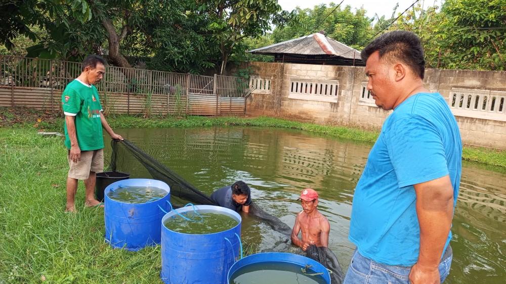 “Alhamdulillah hari ini panen gurame. Meski sibuk di kantor desa, kalau ada niat, waktu buat merawat kolam pasti ada. Biasanya pagi sebelum ke kantor atau sore sepulang kerja,” ujar Kades Samsul Hadi saat ditemui di lokasi kolam.