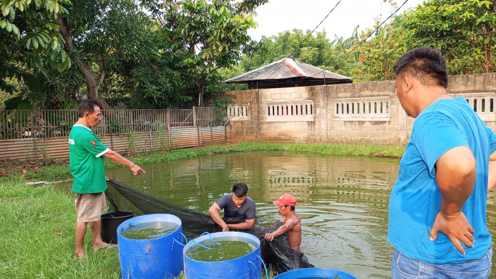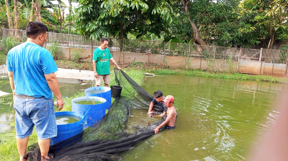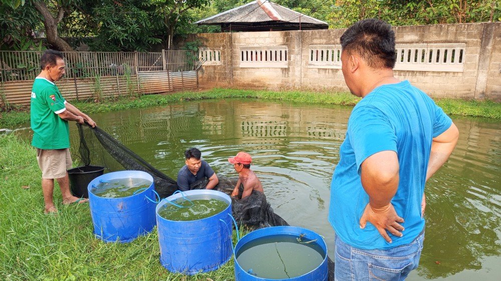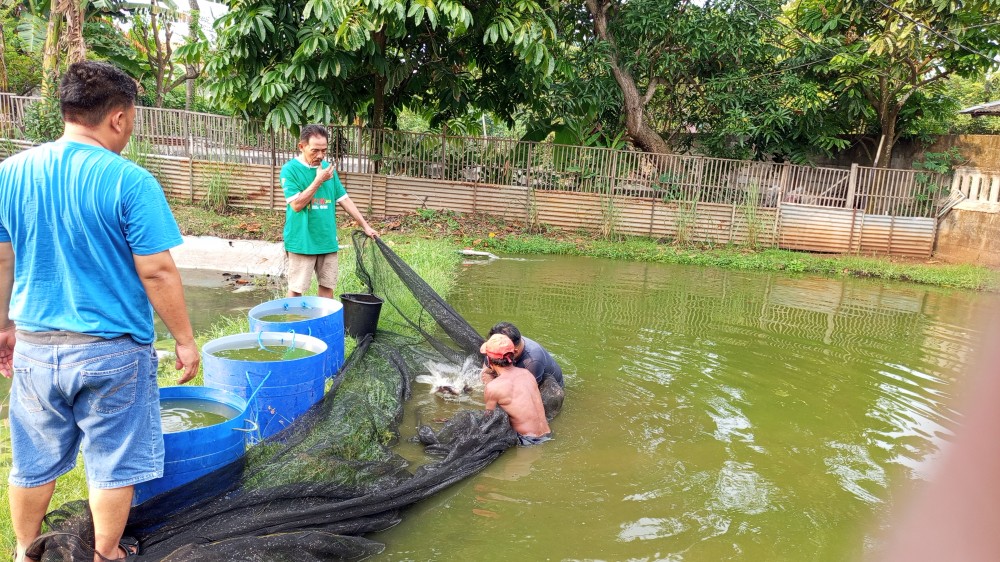 Dua kolam gurame miliknya sudah dikelola hampir setahun. Panen kali ini merupakan yang kedua kalinya. Ikan gurame yang dipanen berukuran konsumsi, siap dipasarkan. Sebagian hasil panen dijual ke pengepul langganan.